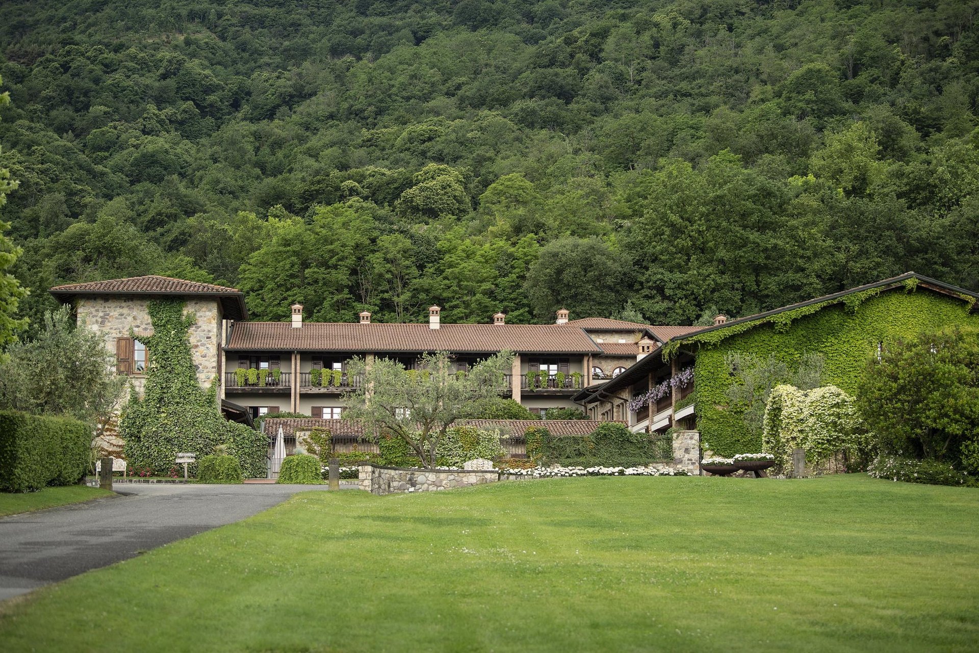 Relais Franciacorta is an elegant country hotel surrounded by vineyards and rolling hills, offering a tranquil atmosphere perfect for corporate stays.
